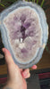 To maintain the vibrant violet colour, keep the slice out of direct, prolonged sunlight. You can cleanse the energy using sound (singing bowls) or by placing clear quartz nearby.